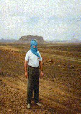 Az álló alak mögött a távolban hegyek láthatók. Ezek a felvétel helyétől északra vannak. Az egyikük elég jellegzetes, koporsó alakú. Tőle keleti irányban egy szabályos kúp.