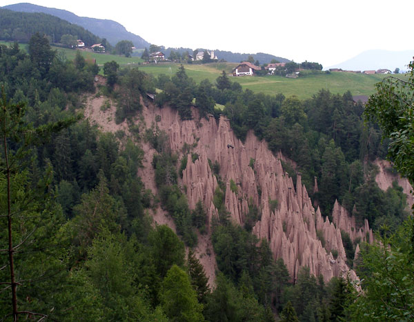 Egész Dél-Tirolban minden hasznosítható földterületet megművelnek, maximálisan kihasználva a termőföldet, ezt a meredek hegyoldalak miatt ültetvényes teraszok létesítésével érik el. A Brenner autópálya felől nézve szinte függőleges hegyoldalt is szőlő-ültetvények borítják. Ezek között vezet fel a több mint 15 hajtűkanyarból álló szerpentin az 1159 méteren fekvő Klobenstein városkába. Innen lehet a legkönnyebben megközelíteni a lenyűgöző formájú és méretű piramisokat egy szakadékvölgyben.