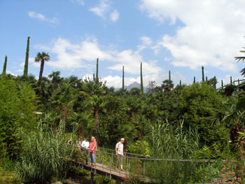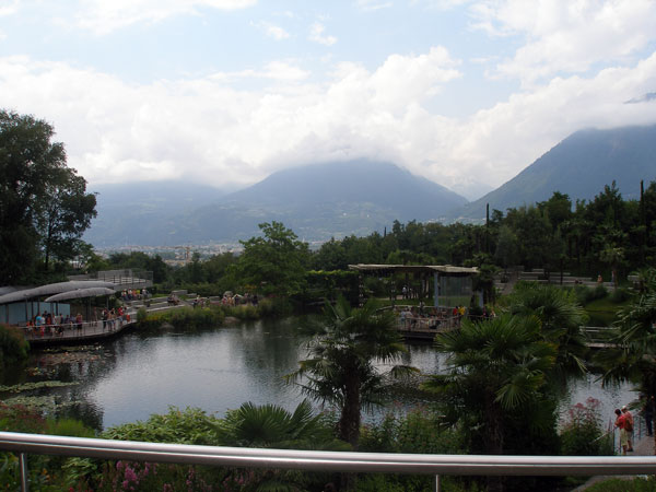 Meran/Merano - korábban Dél-Tirol tartományi székhelye - 3000 m magas hegyek gyűrűjében csak déli irányban nyitott völgyben 325 m tengerszint feletti magasságban fekszik. Éghajlata mediterrán jellegű, a napsütéses napjainak száma 300 körül van. Az utcákat pálmafák szegélyezik, de megél itt a ciprus, a babér, a mirtusz és a libanoni cédrus is.