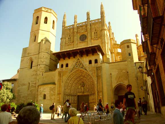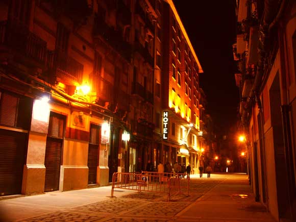 A szállodánk, de nem ezért fényképeztük le, hanem azért mert az egész városban nagyon nehezen lehetett olyan képet készíteni, amelyeken ne éktelenkednének a házak falán kívül vezetett különféle vezetékek kötegei. Szinte mindent elcsúfítottak, s az volt az érzésünk, hogy még a szennyvíz-elvezető is a ház falán kívül van. A másik általános spanyol jellegzetesség is jól látható: ezekben a régi városokban nincsenek járdák, faltól-falig érnek a szebbnél szebben lerakott utcakövek.