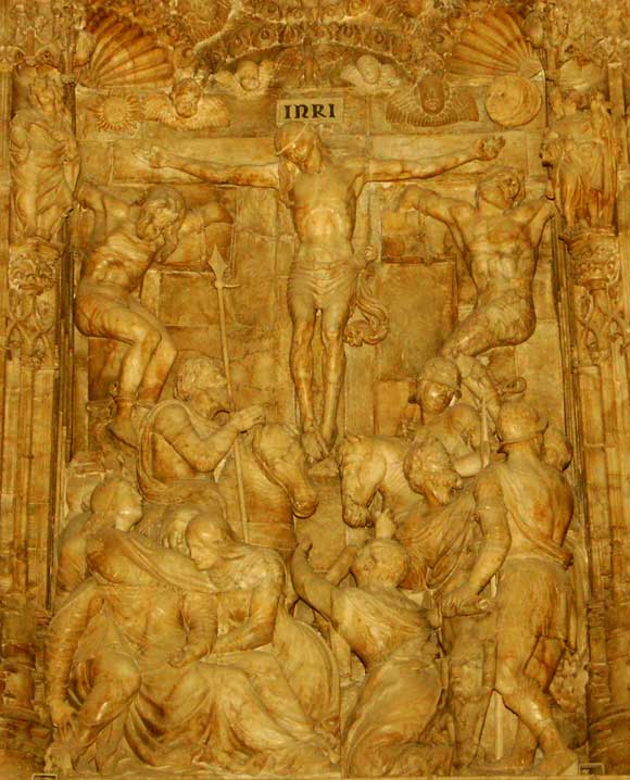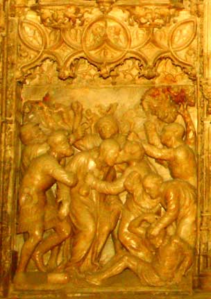 Az oltár alsó részén Krisztus az Olajfák hegyén és Júdás csókja