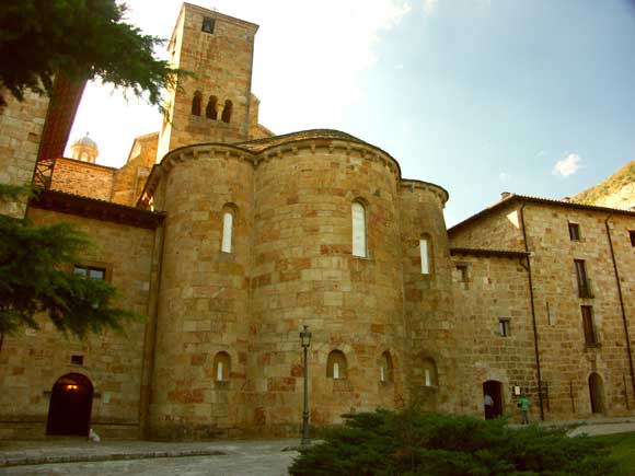 Érdekes a bejárat: a kolostor templomának hármas apszisa mellett van