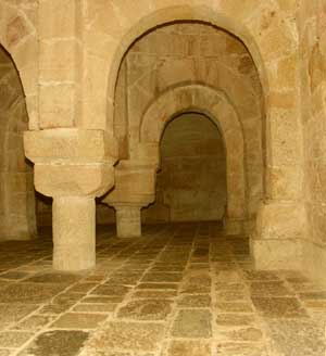 A kripta, máshol sehol sem látott alacsony oszlopfőkkel