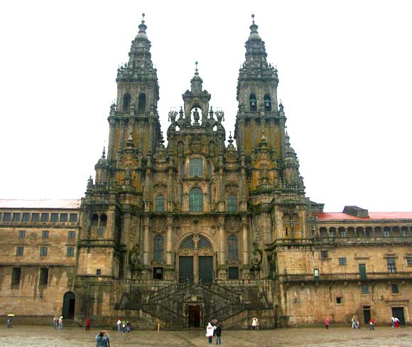 Praza Obradoiro - A Szt. Jakab katedrális balról a püspöki palotával, jobbról a múzeummal