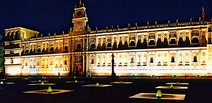 A városnézést néhányan - szokásunk szerint - még előző este a vacsora után megkezdtük: kisétáltunk a szállodánk közelében lévő Szent Márk térre, hogy megcsodáljuk a kivilágított San Marcost. A kolostor eredetileg egy szerény zarándokmenhely volt, majd a Szt. Jakab lovagrend központja lett, akik a zarándokok védelmére jöttek létre. A homlokzat maga is zarándok-történelmet ábrázoló meséskönyv. Ma ez is, mint sok más helyen, a Parador szálloda-lánc luxus szállója.