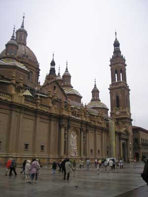 Kietlen, kopár tájon vezetett az utunk, s délután 4 órára értünk Zaragozóba. Két órát kaptunk a város központjának a megtekintésére. Zaragoza A város nevében a római Ceasar Augusta nevet őrzi, amelyet azért kapott, mert az eredeti keltibér Salduba városkában volt Hispania legjelentősebb római katonai tábora. A mórok a várost soha nem tudták bevenni, de 713-ban egy egyezmény során mégis a kezükbe került. Az egyik legkorábban - már 1118-ban - visszafoglalták a keresztények a várost, s nem sokkal utána az egyesült Aragónia és Katalónia királyság fővárosa lett, azonban a polgárháború során - néhány műemléke kivételével - szinte teljesen elpusztult. A város az Ebro mindkét oldalát elfoglalja, de központja a déli oldalon van. A két városrészt összekötő XV. sz-i kőhíd, a Puente de Piedra közvetlenül a Plaza del Pilar-ra vezet, amelynek épületei szinte az egyedüliek, amelyek épen maradtak a háborúk után.