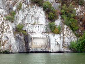 Elsőként a Trajanus-emléktáblához vezetett az utunk. A majd 2000 éves "Tabula Traiana" a szerb oldalon Trajanus császár sziklába épített útjának állít emléket. A duzzasztás előtt a római út párkányának falában egy fülkében állt a tábla, a duzzasztás előtt azonban kivésték és egy vízszint feletti sziklában helyezték át. (Nem úgy, mint a román oldalon a Széchényi út emléktábláját, amely a hullám-sírban maradt.) A tábla szövege az Interneten talált fordítás szerint:  „Uralkodó császár, az isteni Nervus fia, Nerva Trajanus, Augustus Germanicus, Pontifex Maximus, negyedjére a nép képviselője, a haza atyja, háromszoros konzul leküzdötte a hegyek és a Duna szikláit és ezt az utat építette”.