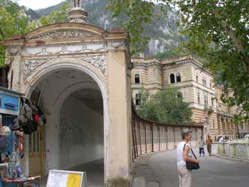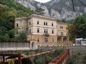 Délután ellátogattunk a vadregényes Cserna-völgyben fekvő Herkulesfürdőre. A folyót két oldalról hatalmas hegyek övezik s a szűk völgyben futó folyópart két partján épült fel a valaha híres fürdőváros.