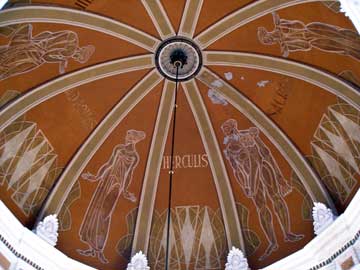 A XIX. század pompáját azért még így is tetten érhetjük, pl. a Szapáry-fürdő romos előcsarnokánál.